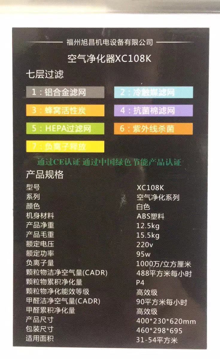 名    稱:閩森凈化XC108家用空氣凈化器